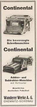 Werbeanzeige für Schreibmaschine und Rechenmaschine Continental monochrom
