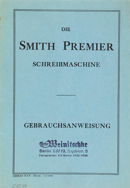 Die Smith Premier Schreibmaschine Gebrauchsanweisung