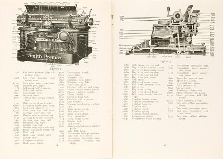 Bedienungsanleitung mit Darstellung sämtlicher Bestandteile für Schreibmaschine Smith Premier Nr. 5314-40.1-21-2500