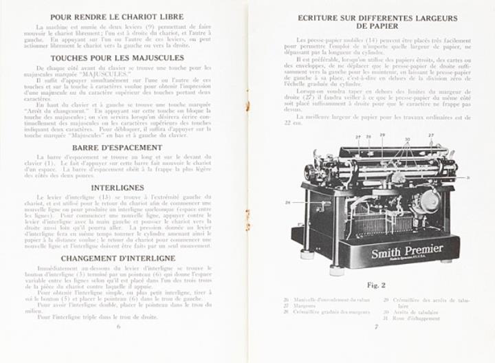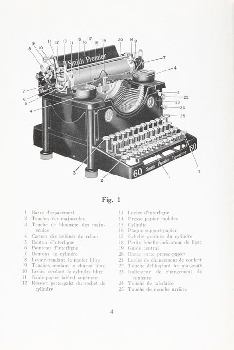 Bedienungsanleitung in französischer Sprache für Schreibmaschine Smith Premier 60 Nr. P.6013