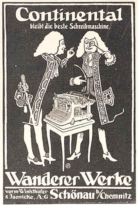 Werbeanzeige für Schreibmaschine Continental monochrom