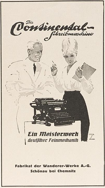 Werbeanzeige für Schreibmaschine Continental monochrom