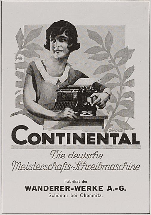 Werbeanzeige für Schreibmaschine Continental monochrom Grafik: Ahrlé, zwei Exemplare
