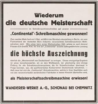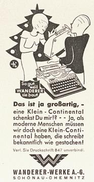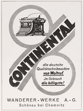 Werbeanzeige für Schreibmaschine Continental monochrom