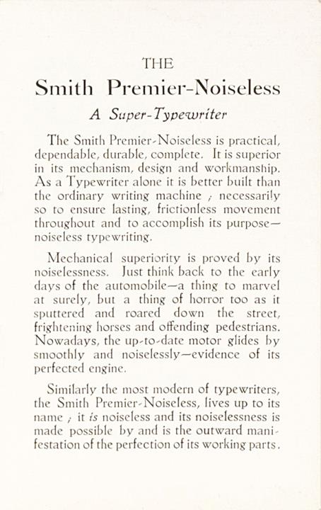 Prospekt für Schreibmaschine Smith Premier Noiseless Nr. 10,000 17/1/30