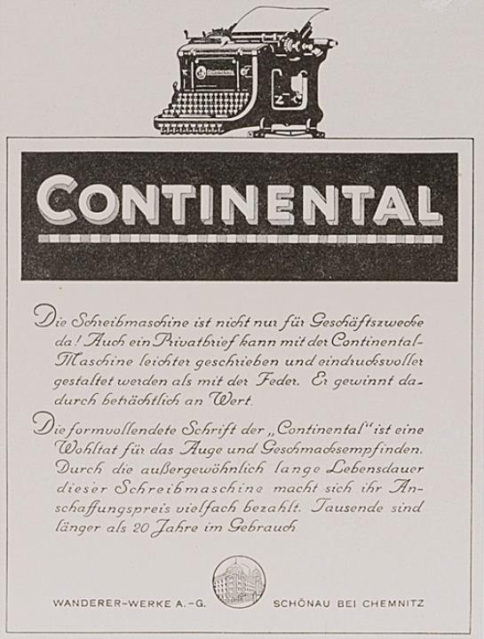 Werbeanzeige für Schreibmaschine Continental monochrom