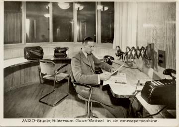 A.V.R.O.-Studio, Hilversum, Guus Weitzel in de omroeperscabine