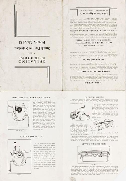 Operating Instructions for the Smith Premier Noiseless, Portable Model 51