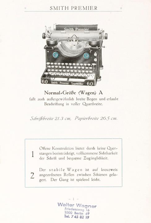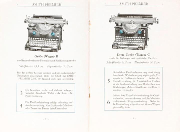 Prospekt für Schreibmaschine Smith Premier