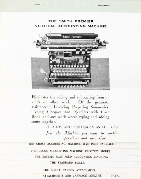 Prospekt für Schreib- und Buchungsmaschinen Smith Premier