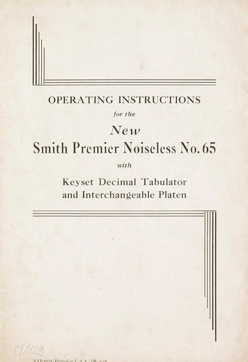 Bedienungsanleitung für Schreibmaschine Smith Premier Noiseless 65 with keyset decimal tabulator and interchangeable platen