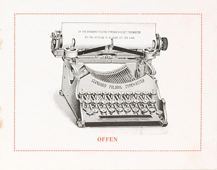 Next to literature on the history of technology, of the typewriter and the office, the Archive holds patent letters, textbooks and instruction manuals as well as historical postcards, letters, photographs and various kinds of advertising (leaflets and brochures, advertising stamps, newspaper ads, posters and signs, promotional gifts).