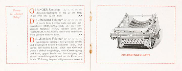 Prospekt für klappbare Schreibmaschine Standard Folding Kleinste Universal-Schreibmaschine der Welt