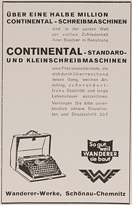 Werbeanzeige für Schreibmaschine Continental monochrom