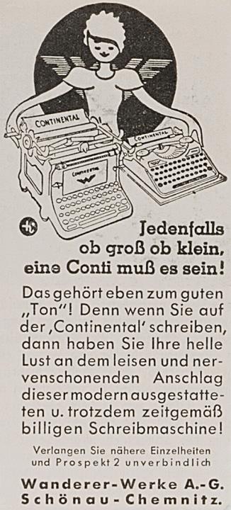 Werbeanzeige für Schreibmaschine Continental monochrom