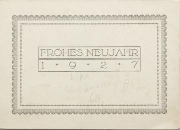Werbekarte (Leporello) des W. Meyerheim Graphische Kunstanstalt und Illustrierte Postkarten-Verlag, Berlin; monochrom Rückseite: drei Fotoansichten: Genre-Lager, Büro- und Musterzimmer der Verlagsabteilung, Illustrierte Postkartenlager Vorderseite: drei Seiten Glückwunsch- und Werbetext