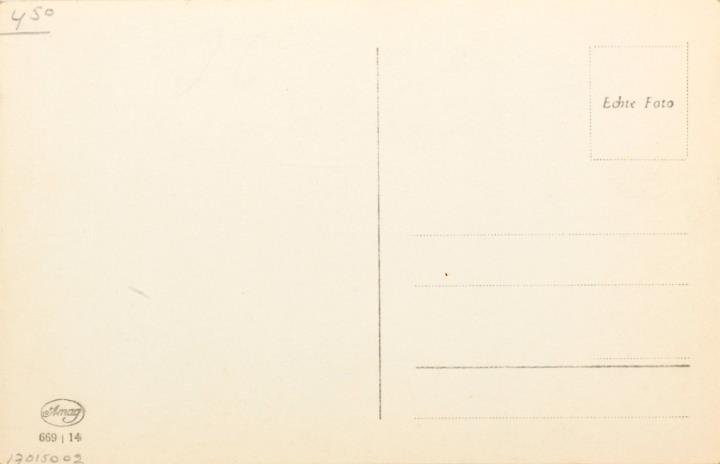 Illustrierte Postkarte; Fotografie, monochrom; Nr. 669/14 Rückseite: Frau mit Schreibmaschine, Blick zum Betrachter Vorderseite nicht beschrieben