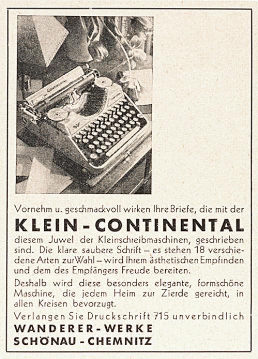 Werbeanzeige für Schreibmaschine Continental monochrom