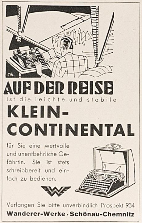 Werbeanzeige für Schreibmaschine Continental monochrom