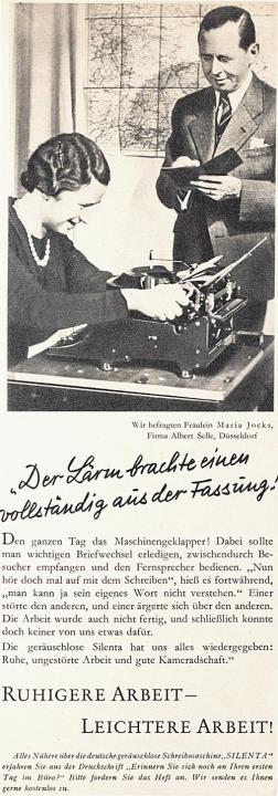 Werbeanzeige für Schreibmaschine Continental Silenta monochrom