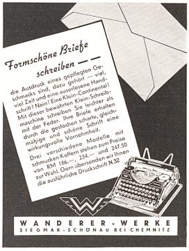 Werbeanzeige für Schreibmaschine Continental Chartyper monochrom