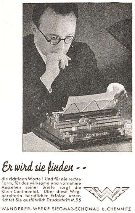 Werbeanzeige für Schreibmaschine Continental monochrom