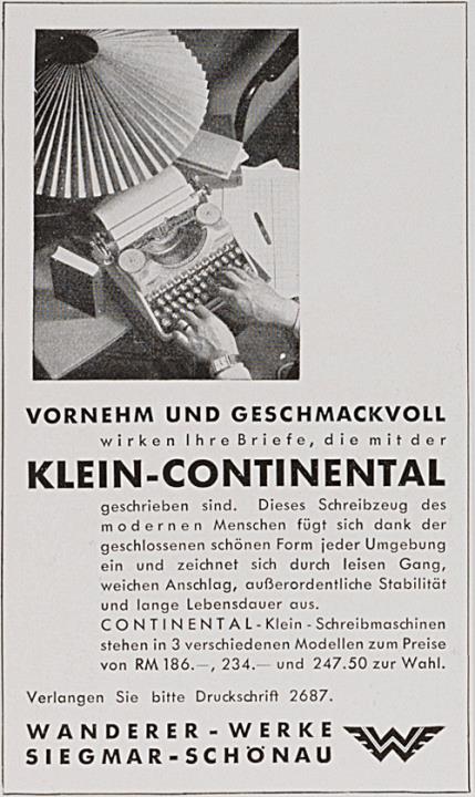 Werbeanzeige für Schreibmaschine Continental monochrom