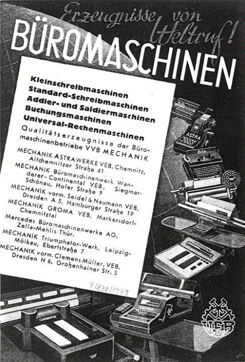 Erzeugnisse von Weltruf! Büromaschinen VEB
