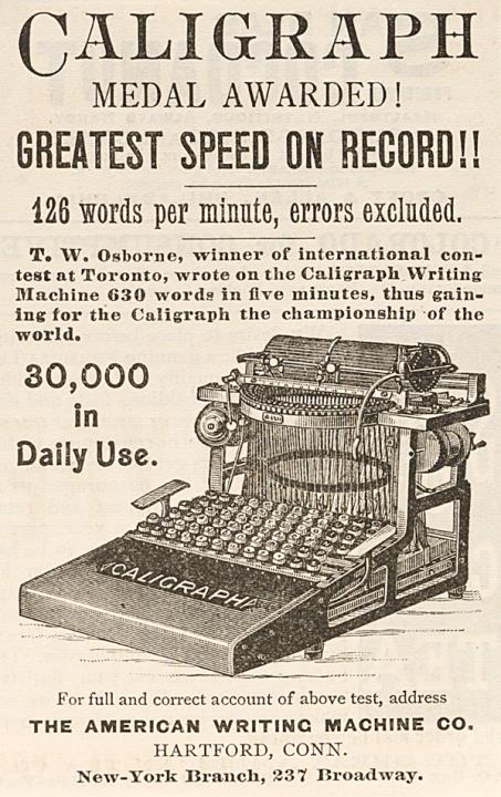 Werbeanzeige für Schreibmaschine Caligraph monochrom