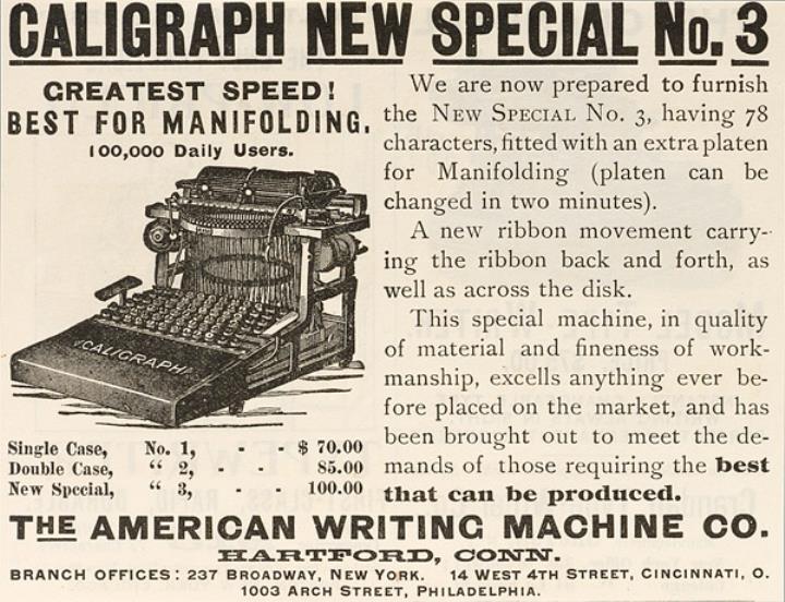Werbeanzeige für Schreibmaschine Caligraph monochrom