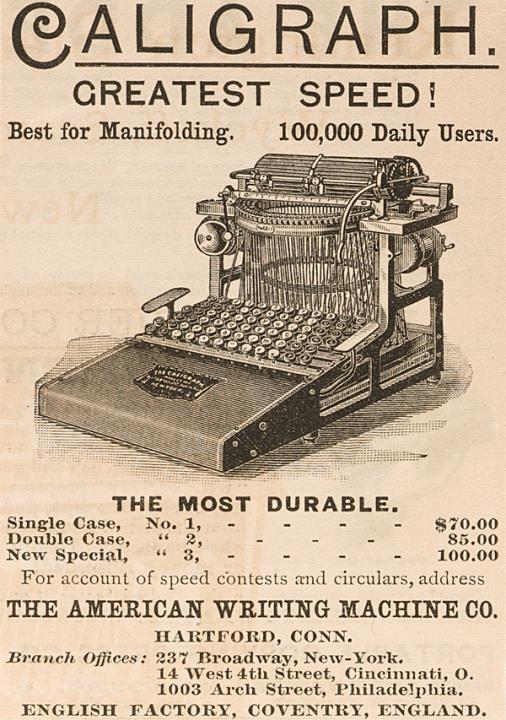 Werbeanzeige für Schreibmaschine Caligraph monochrom