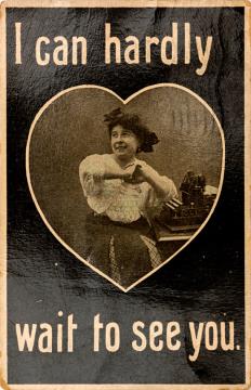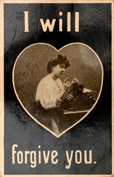 Illustrierte Postkarte; Fotografie, monochrom Rückseite: Frau mit Schreibmaschine, Umrahmung in Herzform Vorderseite: beschrieben; adressiert an Mr Sutton, Buffalo; Briefmarke US Postage one Cent; Poststempel Buffalo/Nov 9 1909