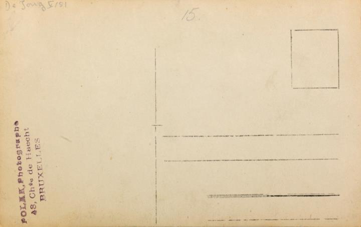 Illustrierte Postkarte mit Autogramm; Fotografie, monochrom Rückseite: Schauspielerin Meg de Cock mit Schreibmaschine Vorderseite nicht beschrieben