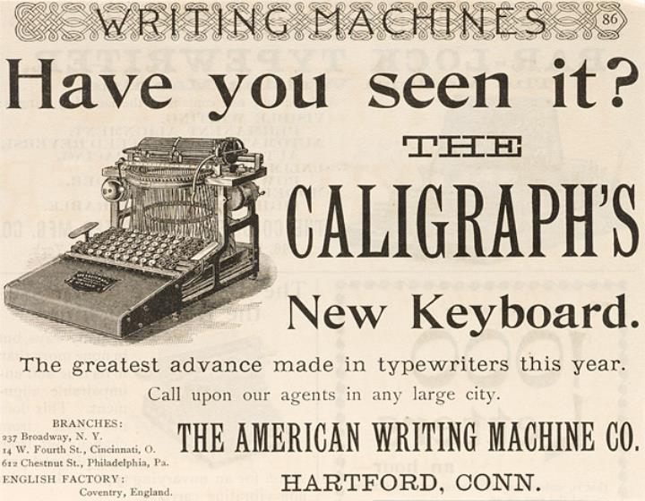 Werbeanzeige für Schreibmaschine Caligraph monochrom, vier Exemplare
