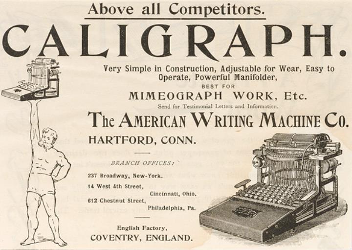 Werbeanzeige für Schreibmaschine Caligraph monochrom
