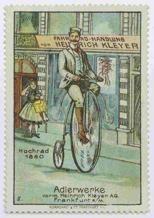 Reklamemarke/Werbemarke einer Serie (Adler); rechteckig, polychrom II: Hochrad 1880