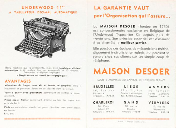 Faltprospekt in französischer Sprache für Schreibmaschine Underwood La plus forte production du Monde Nr. 19.991