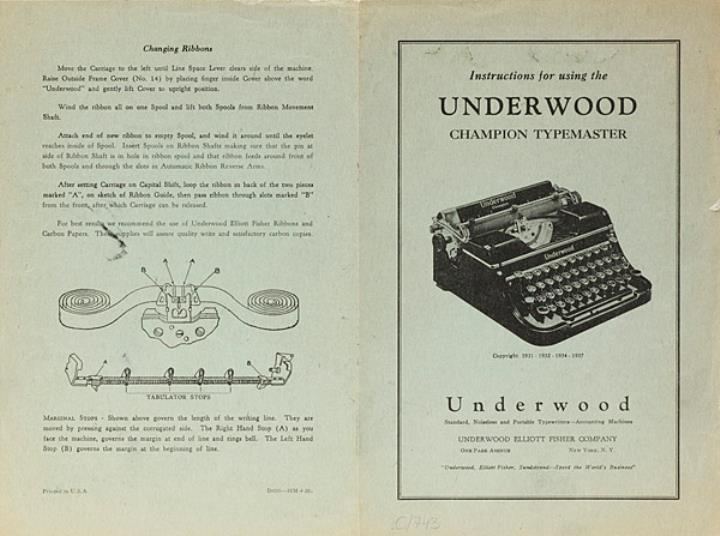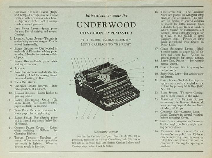 Bedienungsanleitung für Schreibmaschine Underwood Nr. D400-10M-4-38