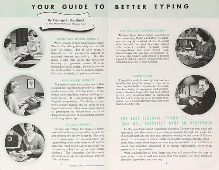 Prospekt für Schreibmaschine Underwood mit Ratschlägen zum besseren Schreiben im Alltag und Büro Nr. PT-300 509100