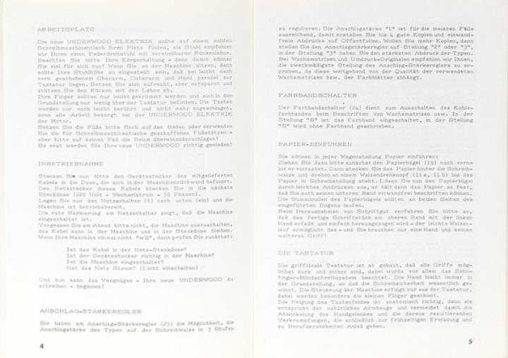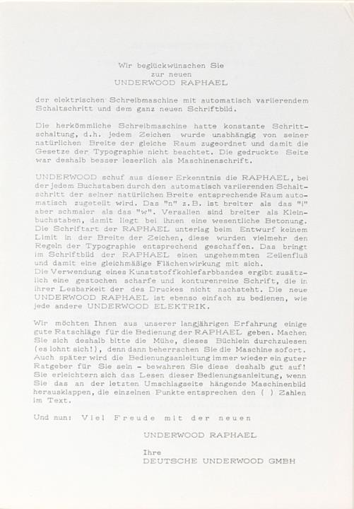 Bedienungsanleitung für elektrische Schreibmaschine Underwood Raphael; mit Randausgleich-Lineal als Beilage Nr. 439197