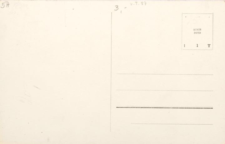 Illustrierte Postkarte; Fotografie, monochrom Rückseite: Frau mit Schreibmaschine, Blick zum Betrachter Vorderseite nicht beschrieben