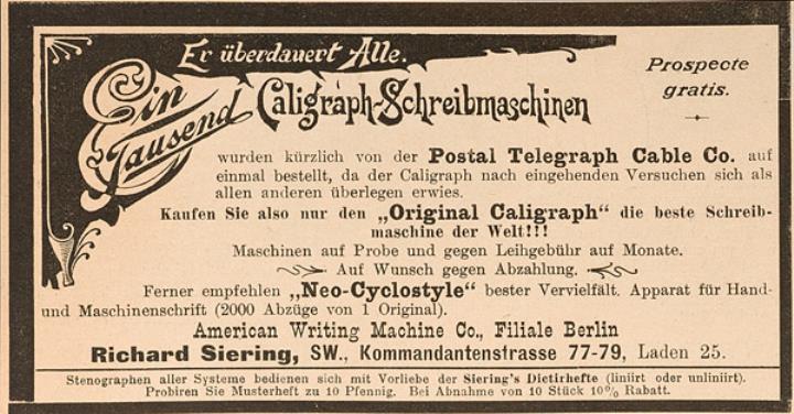 Werbeanzeige für Schreibmaschine Caligraph monochrom