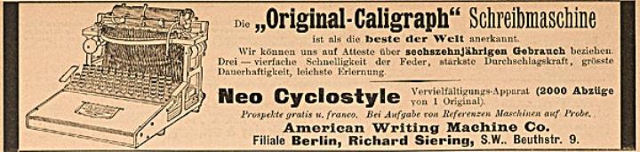 Werbeanzeige für Schreibmaschine Caligraph monochrom