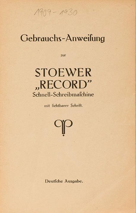 Bedienungsanleitung für Schreibmaschine Stoewer Record Schnellschreibmaschine mit sichtbarer Schrift Nr. a577