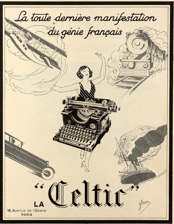 Werbeanzeige für Schreibmaschine Celtic monochrom