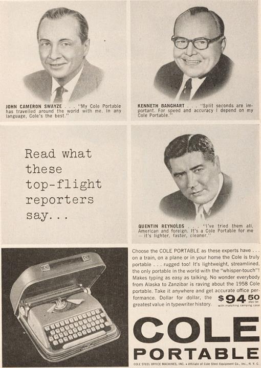 Werbeanzeige für Schreibmaschine Cole monochrom