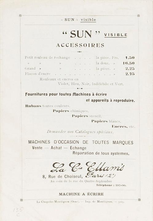 Faltprospekt in französischer Sprache für Schreibmaschine Sun Visible