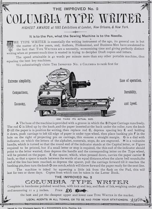 Werbeanzeige für Schreibmaschine Columbia Fotokopie