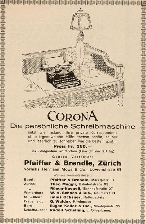 Werbeanzeige für Schreibmaschine Corona monochrom