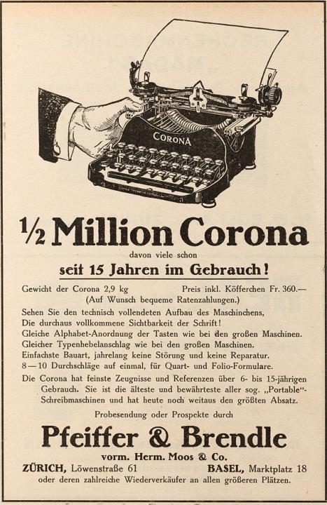 Werbeanzeige für Schreibmaschine Corona monochrom